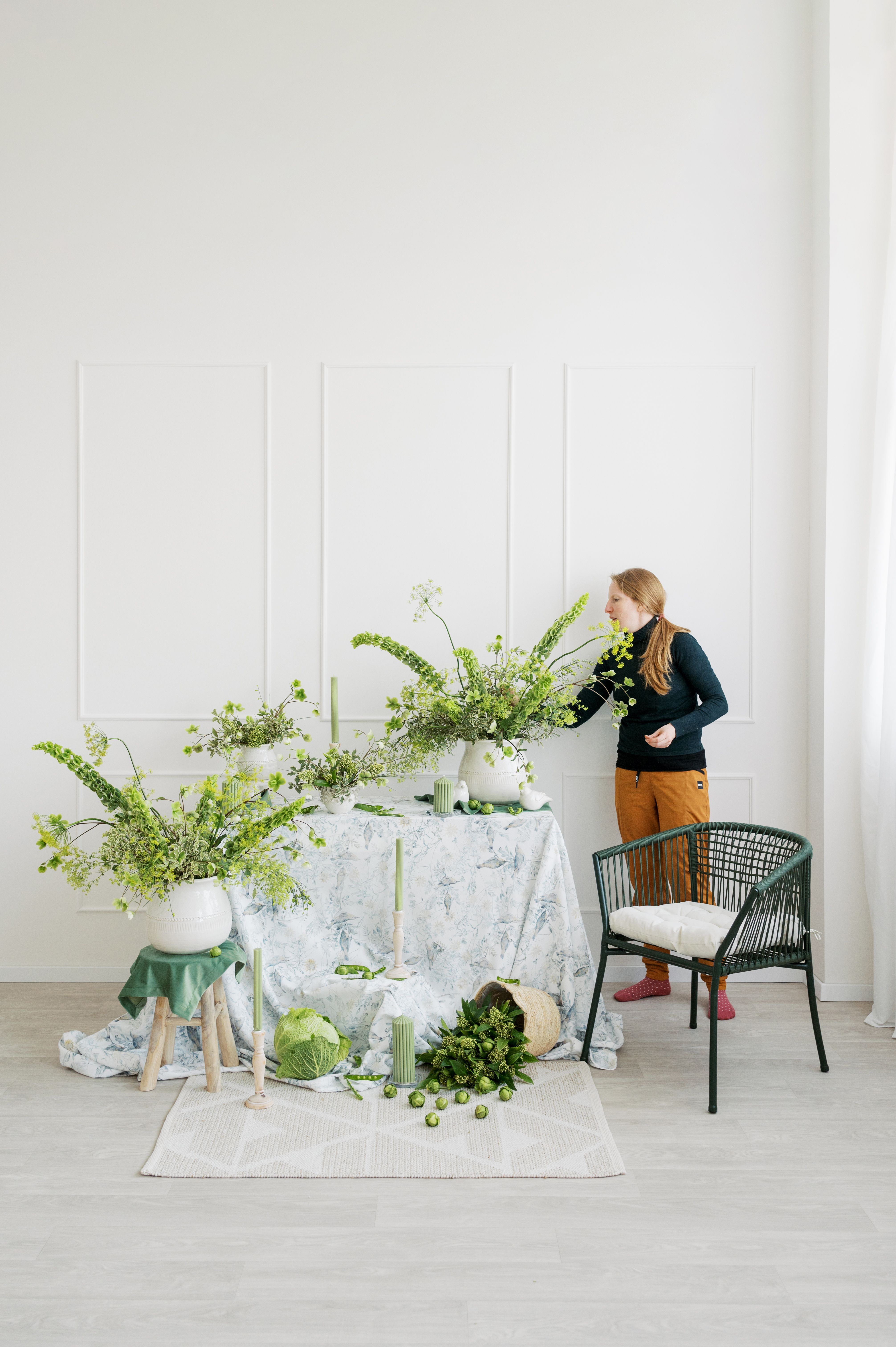 Zelená je moje oblíbená barva, ale málokdo si ji vybere jako hlavní barvu květinové výzdoby. Chtěla jsem ukázat, že zelená květinová výzdoba může být nádherná.